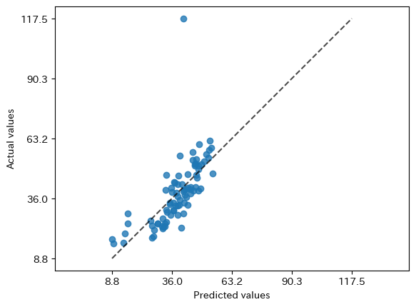 # 正解値と予測値を散布図にプロット disp.plot(kind="actual_vs_predicted")