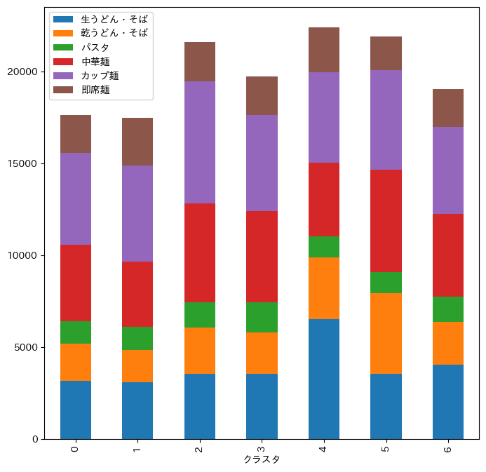 #クラスタごとの各麺類の平均消費額