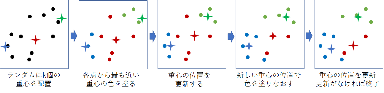 分析者は,あらかじめ何個のクラスタに分けるかを示すハイパーパラメータ k を入力として与える