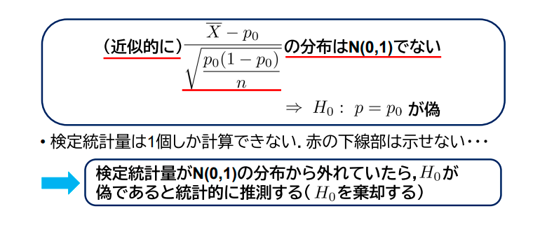 母集団分布のパラメータの仮説を立てて,標本から判定する.†
